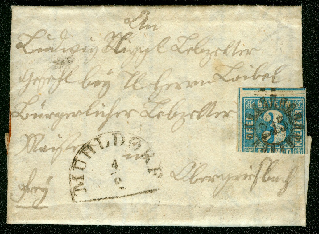 Unter Vorausentwertung versteht man die Entwertung von Briefmarken in Bogen oder Bogenteilen, bevor diese zur Frankatur auf den Brief aufgeklebt werden. Normalerweise erfolgte dies mit einem Stempelabschlag, in Bayern eben mit dem Mühlradstempel. Die vorausentwertete Marke wird auf den Brief geklebt und nicht nochmals entwertet. Hier liegt der Unterschied zu den Vorentwertungen. Hier wurden die Marken in der Regel mit einem Tuschestrich bogenweise vorentwertet und dann auf dem Brief nochmals gestempelt.