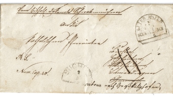Auffallend ist der Güterexpeditionsstempel von Schwabmünchen, der einen sehr schwachen Abschlag eines HK-Stempels mit Datum 1.5. überdeckt, somit als Aufgabestempel verwendet. Warum? Da der eigentlich zu verwendende Winkler-Typ 11 zu sehr abgenutzt/unbrauchbar war? Also der GE-Stemple als Aushilfsstempel? Lagen Güterexpedition und Briefpostdienst in Schwabmünchen räumlich zusammen?