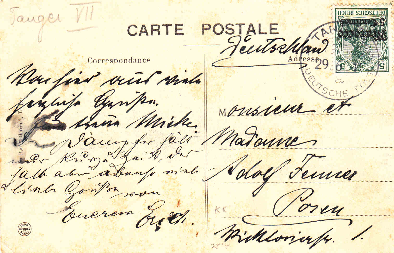 Und eine Ansicht von Tanger, die Karte wurde im Februar 1909 nach Berlin gesandt...