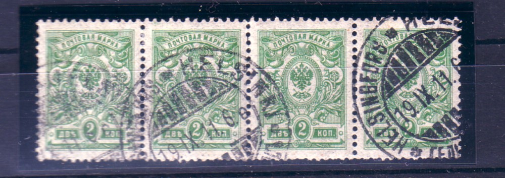 Auf den ersten Blick würde ich tippen, das da ein Beistempel zum entwerten benutz wurde.Ich bin großer Fan der Romanov Ausgabe weil die Marken eine vernünftige größe für einen Vollstempel haben und zu einer Zeit verausgabt wurden als die Ausdehnung des russischen Kaiserreichs am größten war.