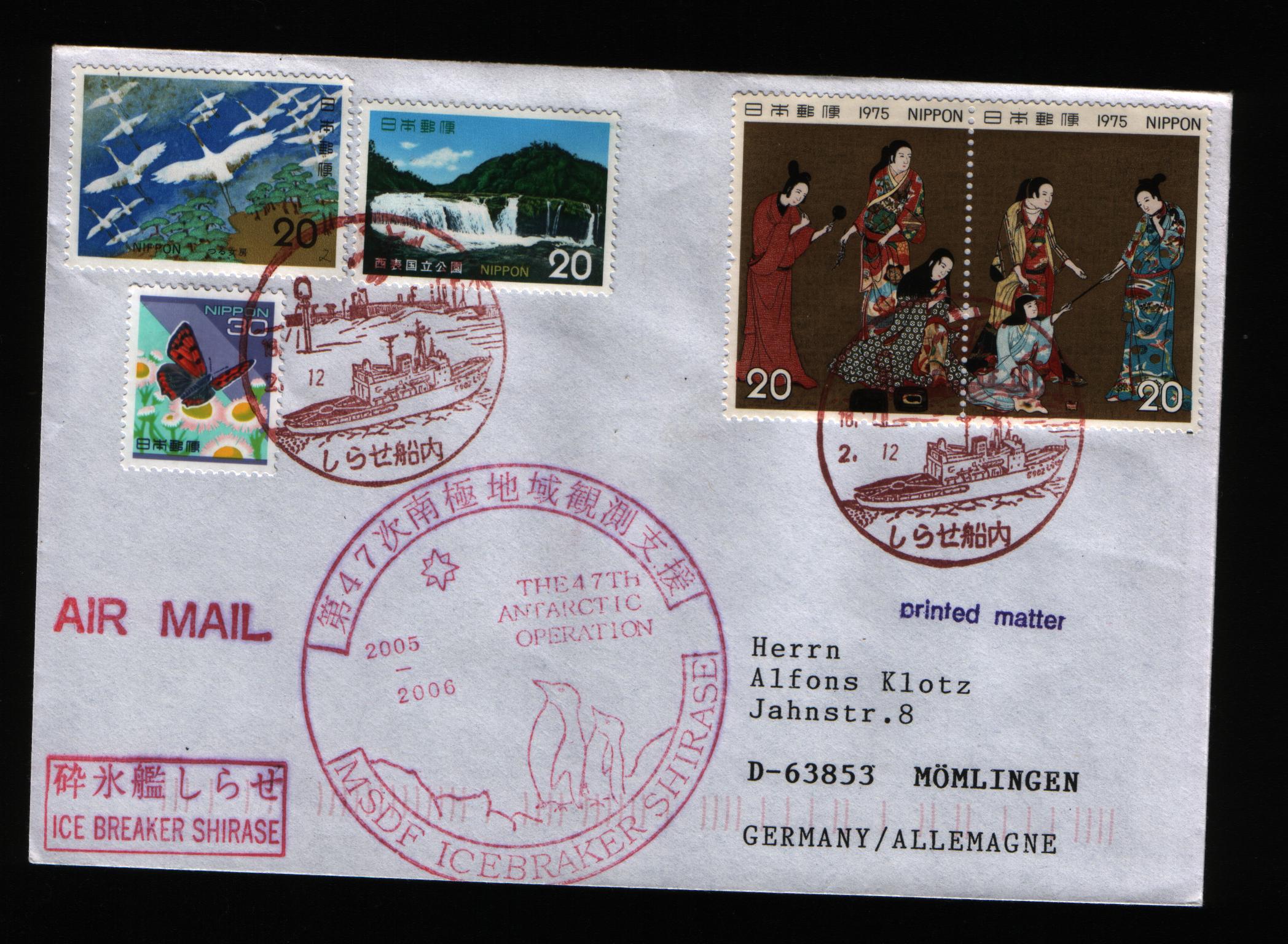 Hier ein japanischer Beleg des Eisbrechers "Shirase" zur 47ten "Antarctic Operation".