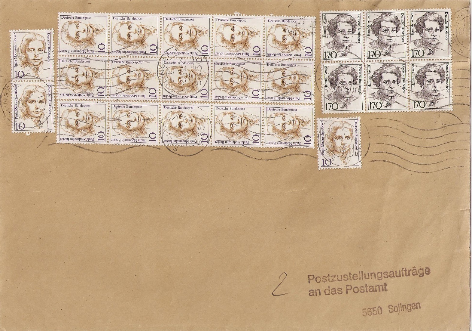 PZA Umschlag portogerecht frankiert mit 18* 10 Pf Modersohn-Becker (1359) + 6* 170 Pf Arendt (1391)