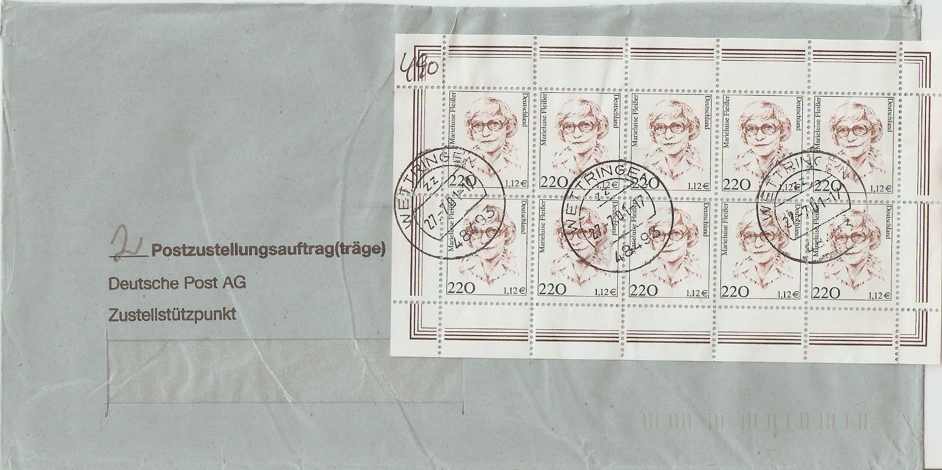 Den heutigen Anfang macht ein Kompaktbrief mit Zusatzleistung Wertbrief über 1000,- DM.