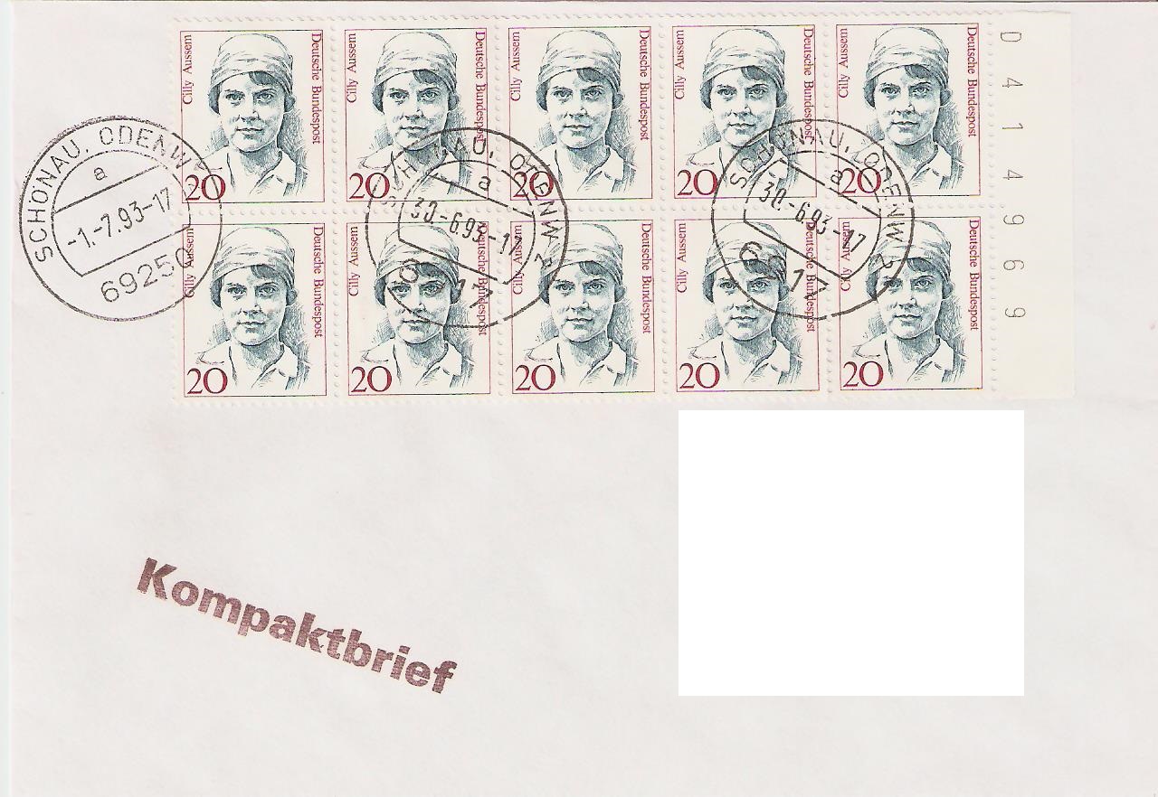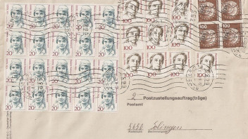 Frankiert mit 20* 20 Pf Aussem (1365) + 10* 100 Pf Giehse (1390) + 4* 100 Pf I&T (854)