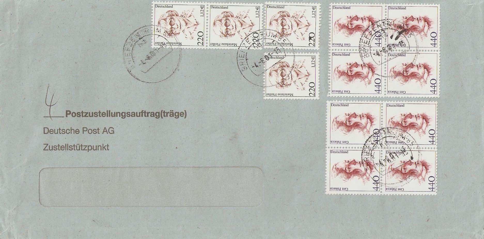 Korrekt frankiert mit 4* 220 Pf Fleißer (2158) + 8* 440 Pf Palucca (2014)