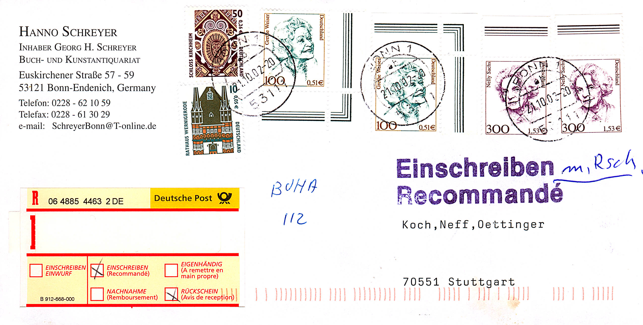TSt 53111 BONN 1 ab vom 24.10.02 R-Label und codiert