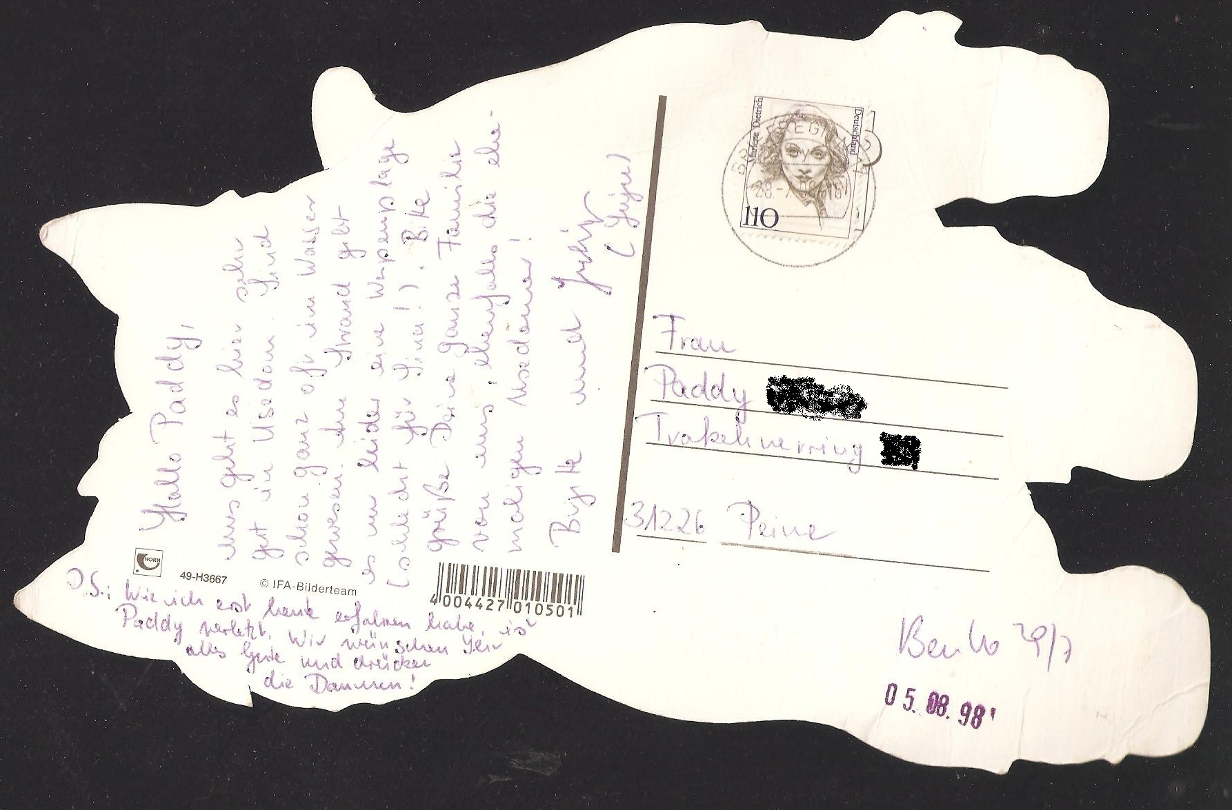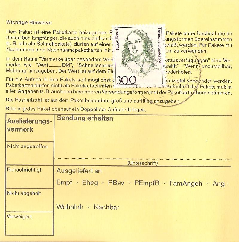 Da ich auch immer in etwa wußte wann er wo ist, habe ich diese Belege erstellt. Die meisten kamen wieder zurück, da er schon wieder auf Achse war, ich habe aber auch Belege, die ihn noch erreicht haben ![]()
