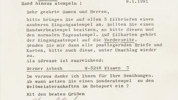 Interessant ist die Rückseite. Man erhält einen kleinen Einblick in die "Arbeitsweise" des Herrn Asbach. Eine kleine Rarität stellt hier zudem die Original Unterschrift dar.PS: Ich denke, die Abstempelung aus Altenberg wird Herrn Asbach nicht so gefallen haben...