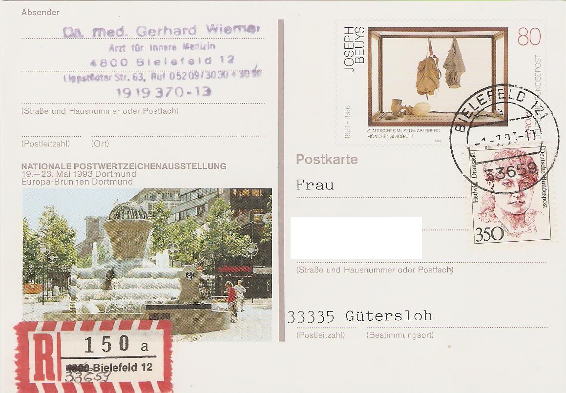 Zusatzfrankiert mit 1* 350 Pf Dransfeld (1393).