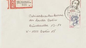 Nett anzusehen die handschriftlich geänderte PLZ im Einschreibezettel.