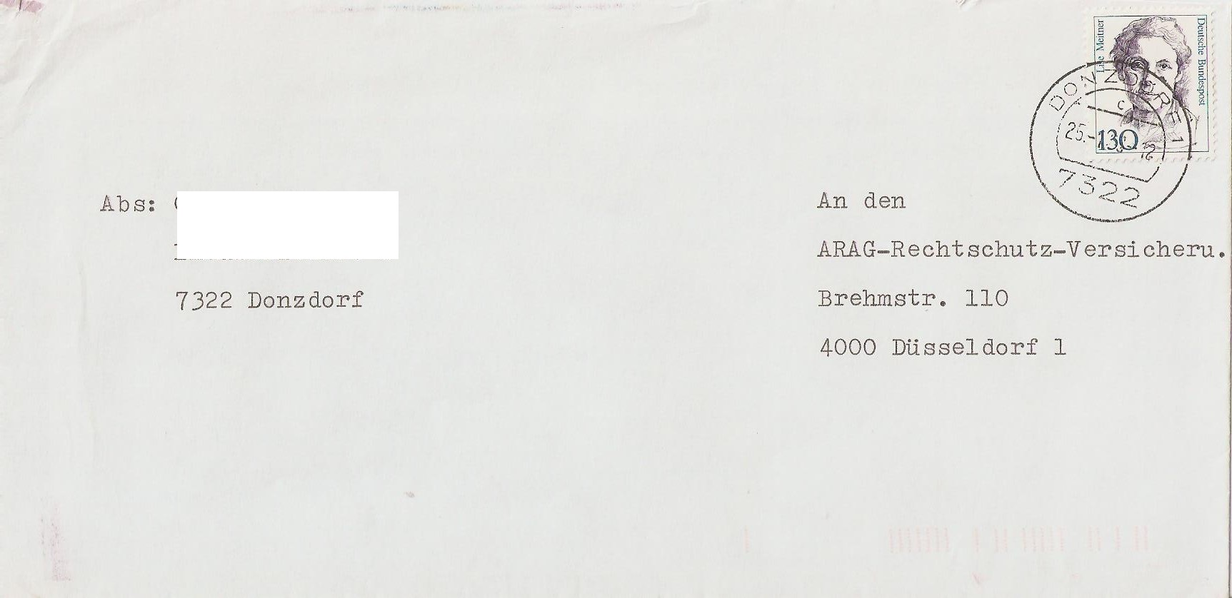 Brief (20-50g) frankiert mit 1* 130 Pf Meitner (1366).