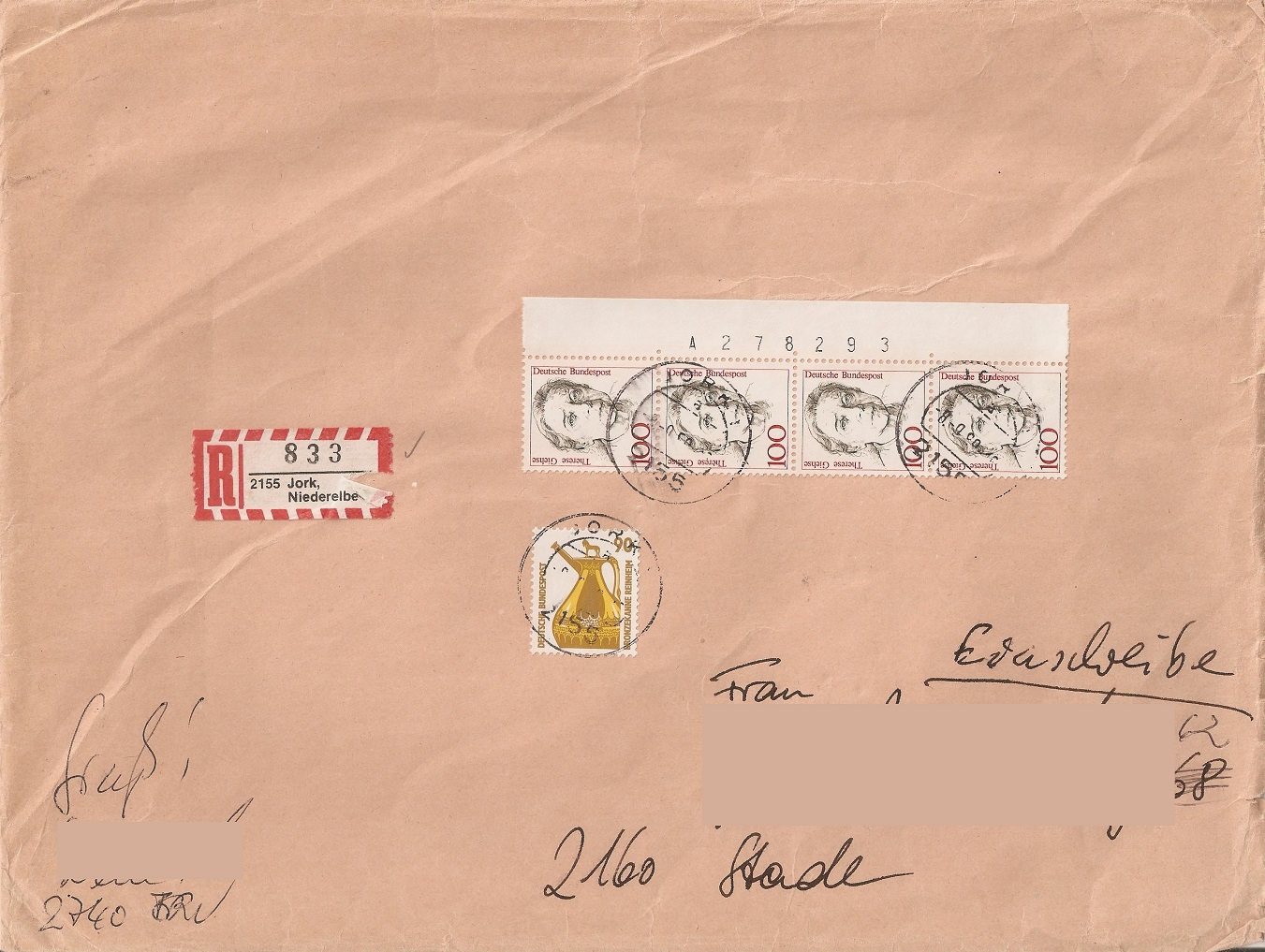 Frankiert mit 5* 10 Pf Modersohn-Becker (1359) + 2* 150 Pf Scholl (1497)