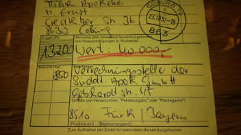Wow 132 DM für eine Strecke von Coburg nach Fürth, was ungefähr 105 km sind. Das hätte wohl auch ein Privatkurier dafür geliefert.