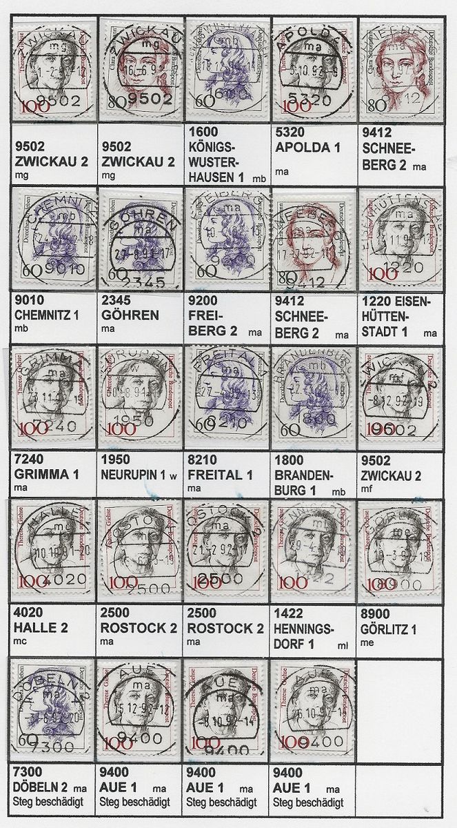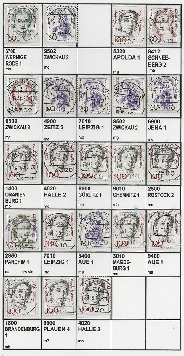 Alles ist relativ, aber im Vergleich zu ihren Vorgängern und Nachfolgern sind sie doch weniger häufig. Das liegt an der kurzen Einsatzzeit. Die Stempel müssen nach dem 3.10.1990 hergestellt worden sein, und ab 1.7.1993 galten schon die neuen Postleitzahlen, da wurden auch gleich die Poststempel ausgetauscht.