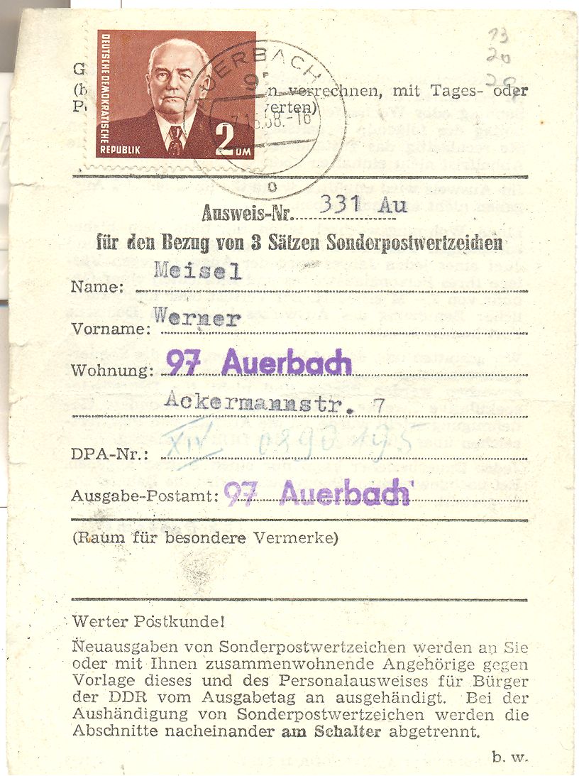 in der ehemaligen DDR, gab es ja Ausweise, die den Kauf von Sonderpostwertzeichen ermöglichten, als Anhang ein Scan eines solchen Ausweises.