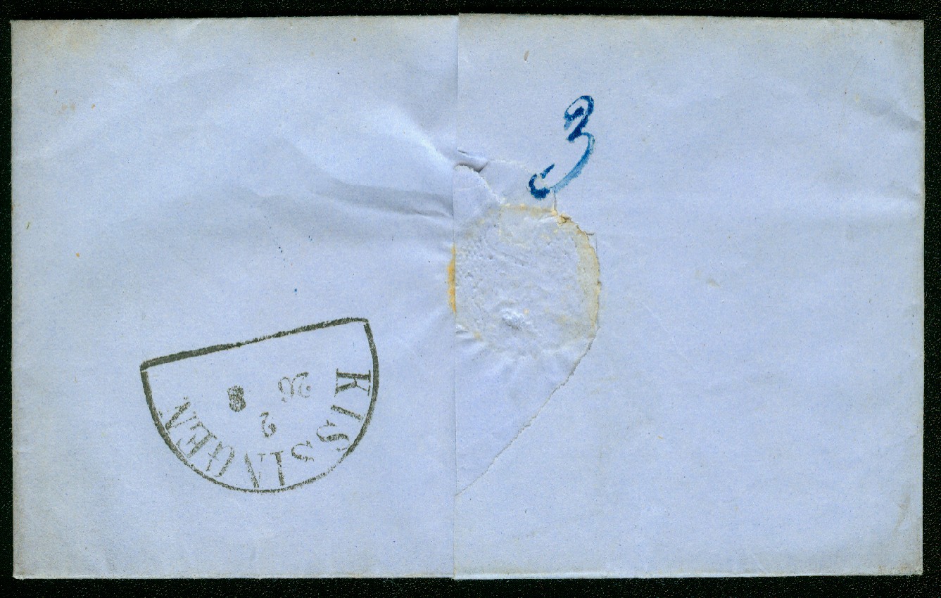 Der Brief lief von Kissingen über Aschaffenburg (bay. Grenzpunkt) - im geschlossenen Transit durch Taxis über Frankfurt - Koblenz (preuß. Grenzpunkt) nach Oberstein im Fürstentum Birkenfeld.