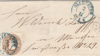 Ein kleines Briefchen vom 2.11.1865 aus Oldenburg mit Inhalt nach München erregte meine Aufmerksamkeit in Sifi. Dazu war er noch tief geprüft von Frau Brettl. Also mussten die 3 Groschen in mein Album wandern.