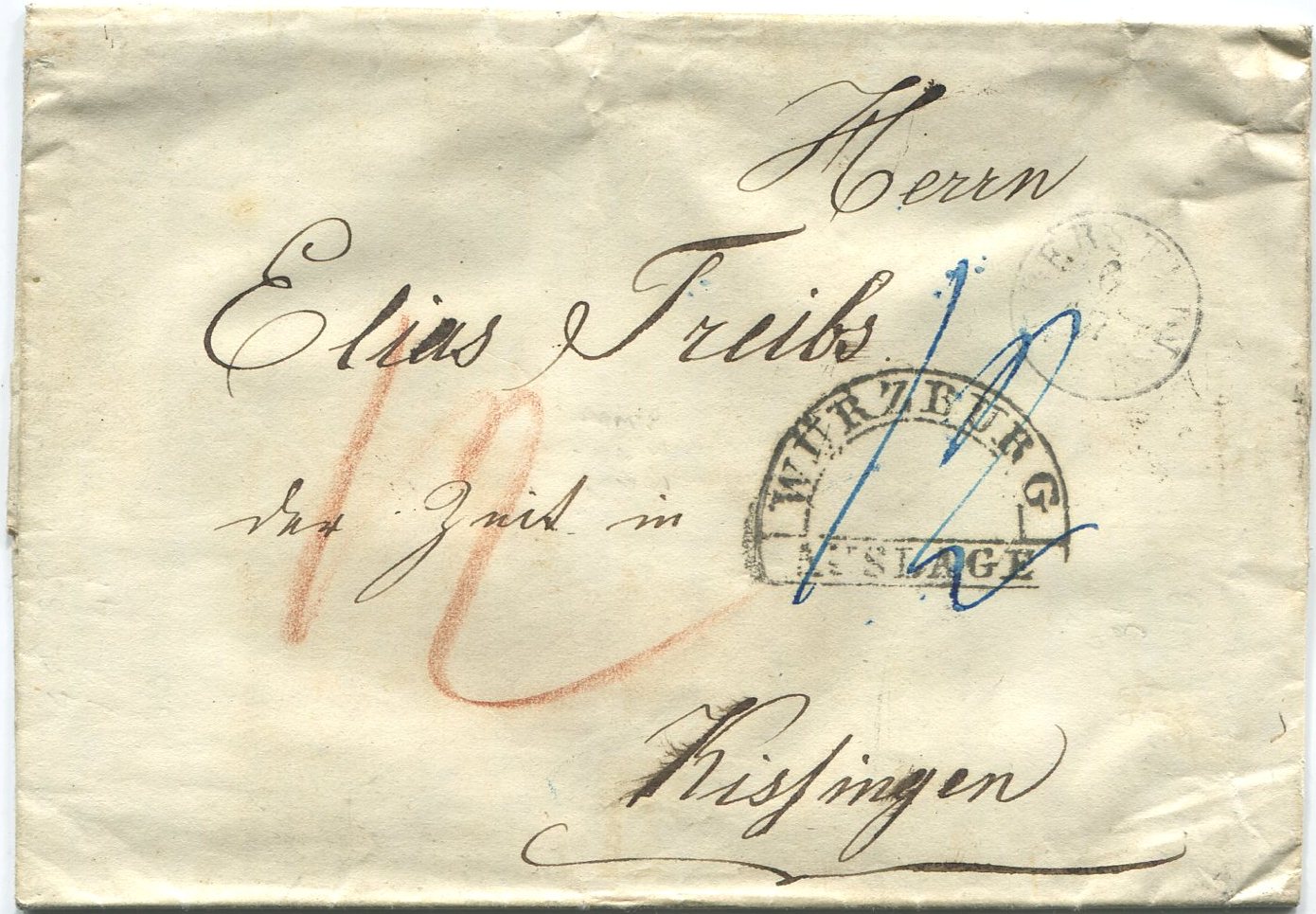 Bayern vermerkte für die Strecke Kissingen - Aschaffenburg 6 Kreuzer (2. Gewichtsstufe, Entfernung 6 - 12 Meilen).