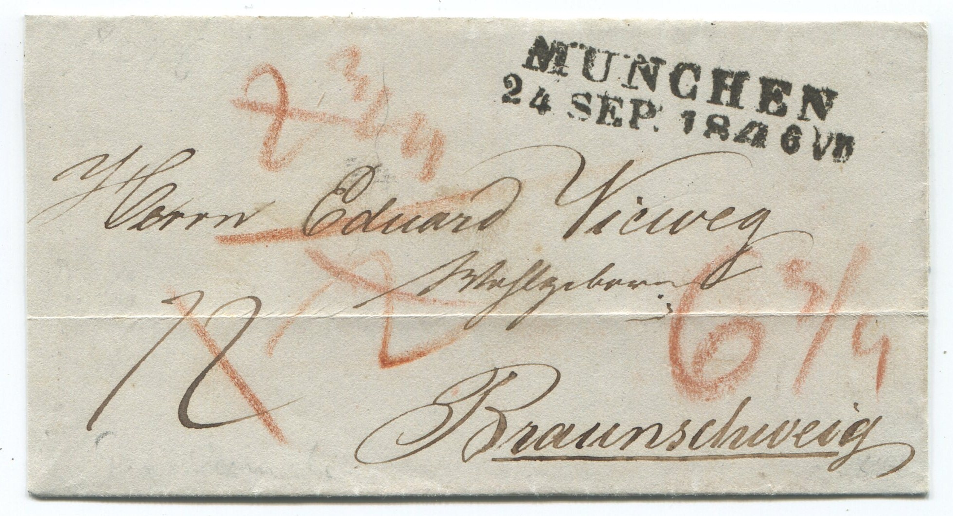Wenn es mit Hannover in einen (preußischen) Topf geworfen worden wäre, dann hätte Preußen eine Transitforderung von 5 Sgr. = 18 Kr. an Bayern gestellt. Die bedeutete aber, dass der Brief vom Absender bis zur braunschweigisch - preußischen Grenze hätte bezahlt sein müssen, was ich nicht erkennen kann.