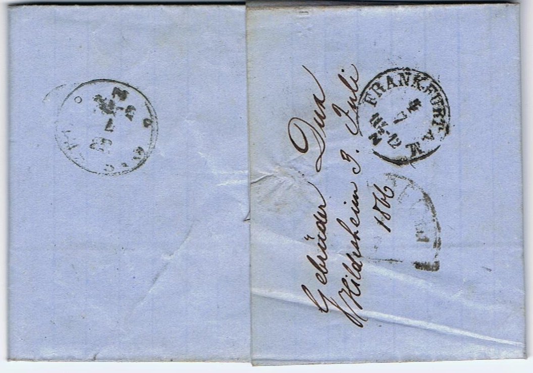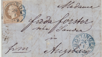 Der Brief ging von Göttingen am 24.1.1862 nach Bayern. Also ein Postvereinsbrief. Dabei lief der Brief über Frankfurt (TuT) und dann nach Augsburg. Die Entfernung ist deutlich über 20 Meilen ;) deshalb wurde auch ein 3 Gr. Michel 19 a (9 kr.) für die Frankierung benutzt.