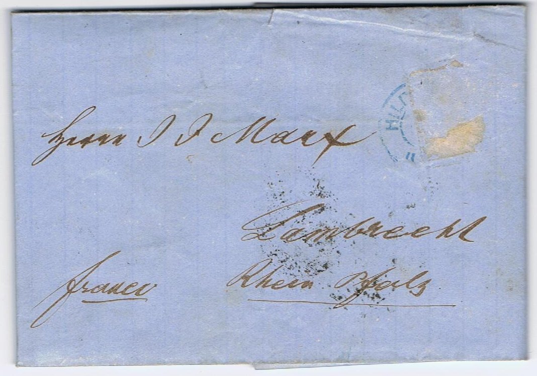 Der Rückseitige Bahnstempel ist, glaube ich, der Mainz-Cöln Stempel.