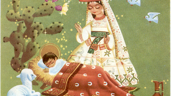 alte Weihnachtskarte aus Mexiko, auch mit einem Kaktus