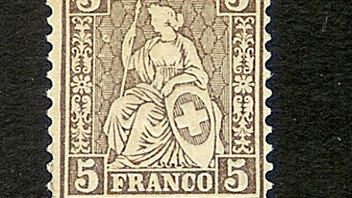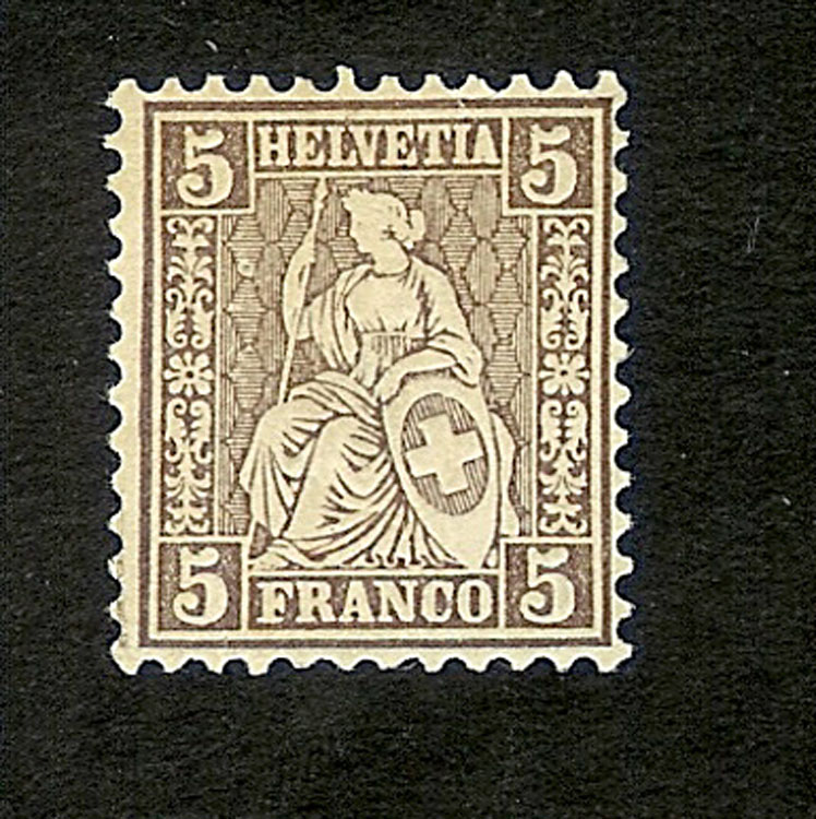Ich habe hier eine sitzende Helvetia, SBK-Nr. 45 mit kopfstehender Doppelprägung.