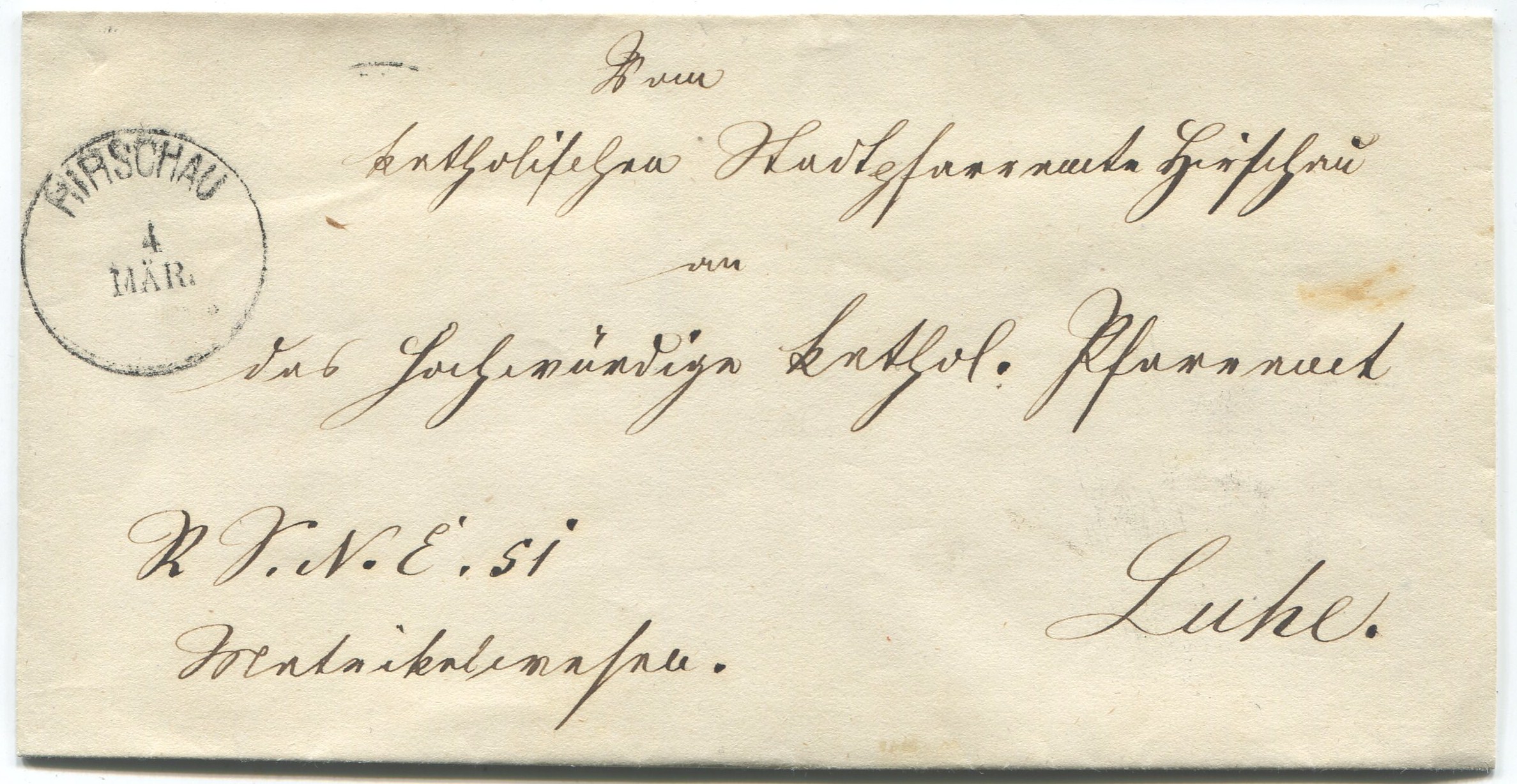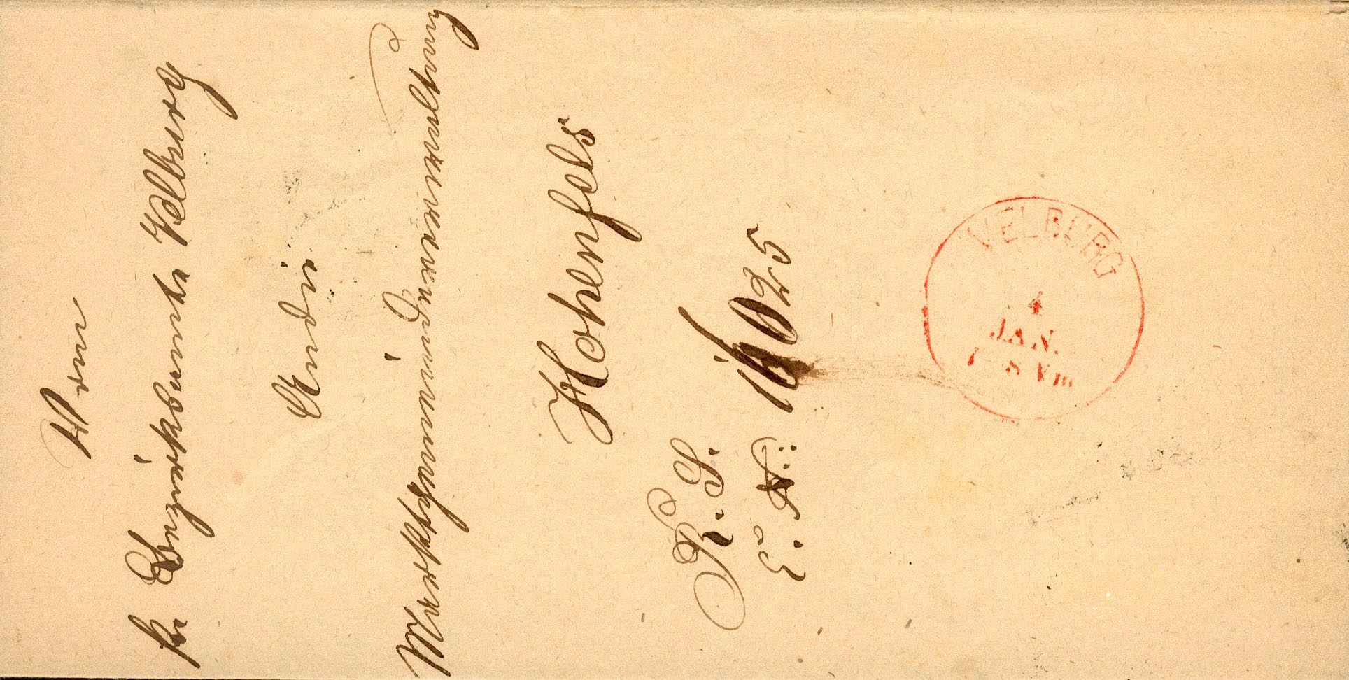 Eine Besonderheit dieses Ortes war, dass zeitweise mit roter Farbe gestempelt wurde, hier als Beispiel ein Brief vom 4. Januar (1871, laut Inhalt). Im Jahr 2000 wurde dieses Stück bei Deider für 150 DM ausgerufen, fand aber keinen Liebhaber, jetzt konnte ich es zu einem deutlich niedrigeren Preis auf der Messe in München kaufen.