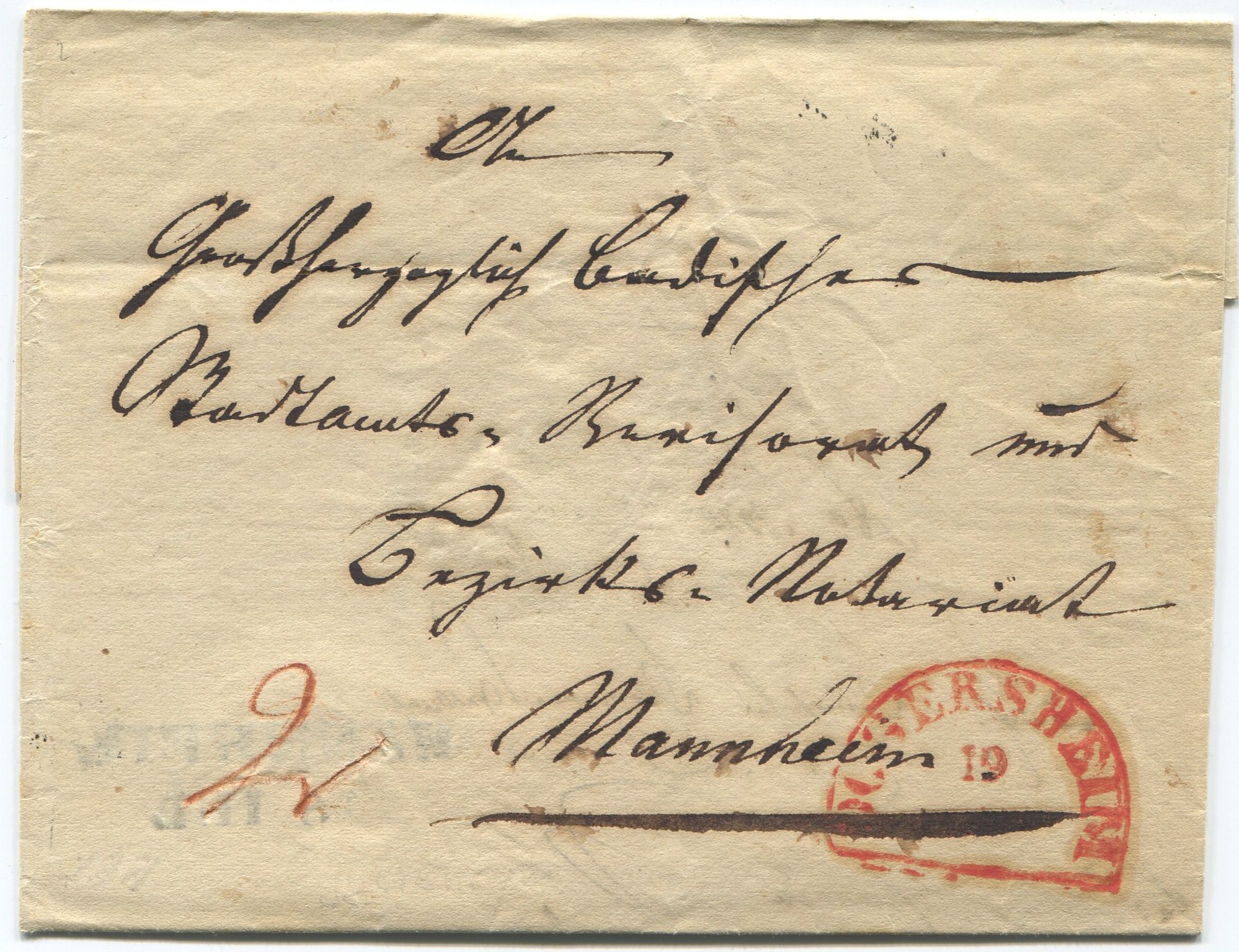 Unfrankierter Brief von Oggersheim ins benachbarte