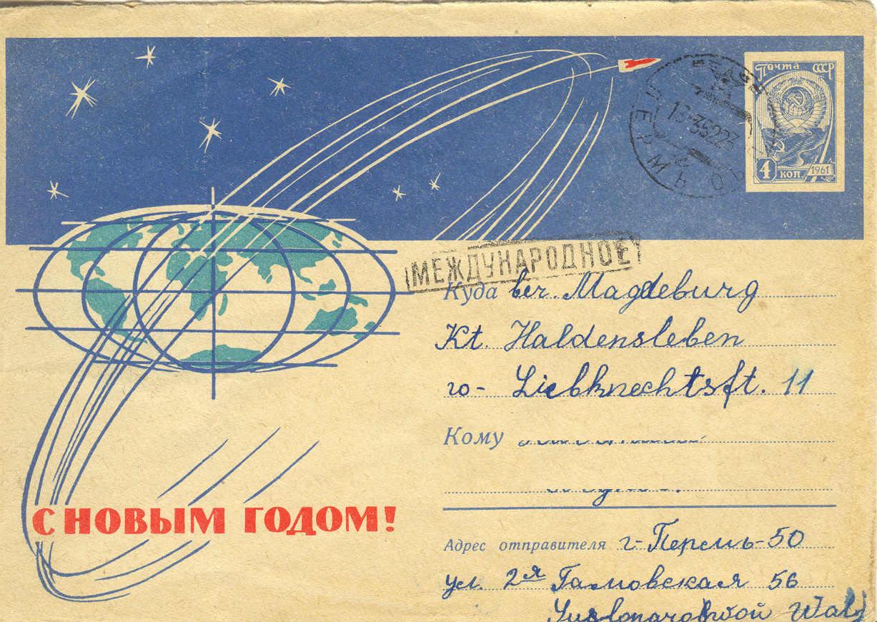 Und hier nochmal Neujahrsgrüße aus der ehemaligen UdSSR, dieses Mal allerdings motivbezogene Ganzsachenumschläge.