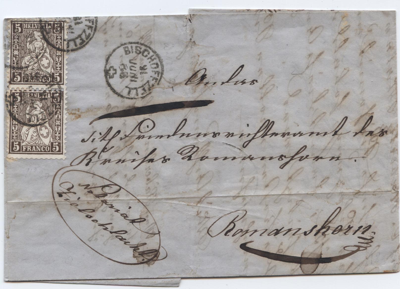 hier ein Brief von 1863 von Bischoffzell nach Romanshorn beide im Kanton Thurgau.
