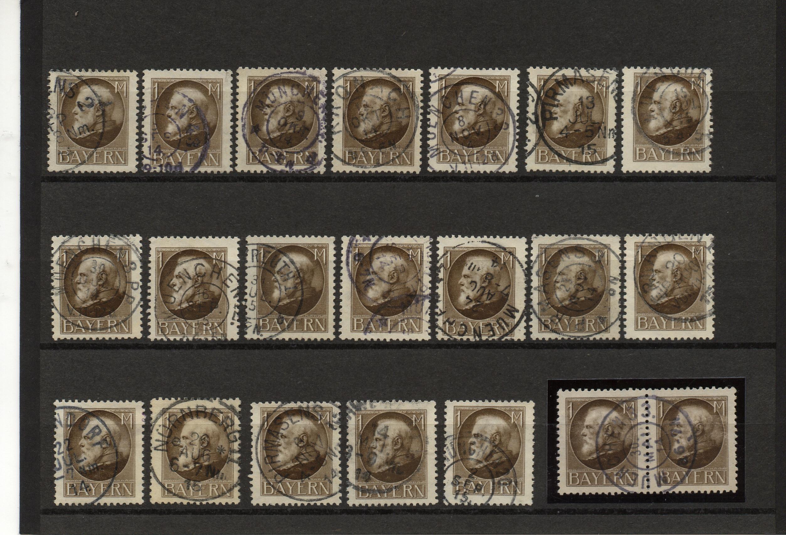 Da mein Sammelgebiet hauptsächlich Bayern Dienst und die Pfennigausgaben sind, muß ich wohl oder Übel die meisten Marken prüfen lassen, schon wegen den Infla-Stempeln, den da gibt`s ca. 90% Falsch oder Gefälligkeitstempel. Hat vieleicht Herr Dr. Helbig diese Stempel gemeint?? Diese Stempel sind in seinem Büchlein über Falschstempel bei Bayernmarken nachzusehen. Die Ausgaben der Späteren Bayernjahre tragen in der Mehrzahl solche Stempel, bis hin in die Dienstmarkenzeit.