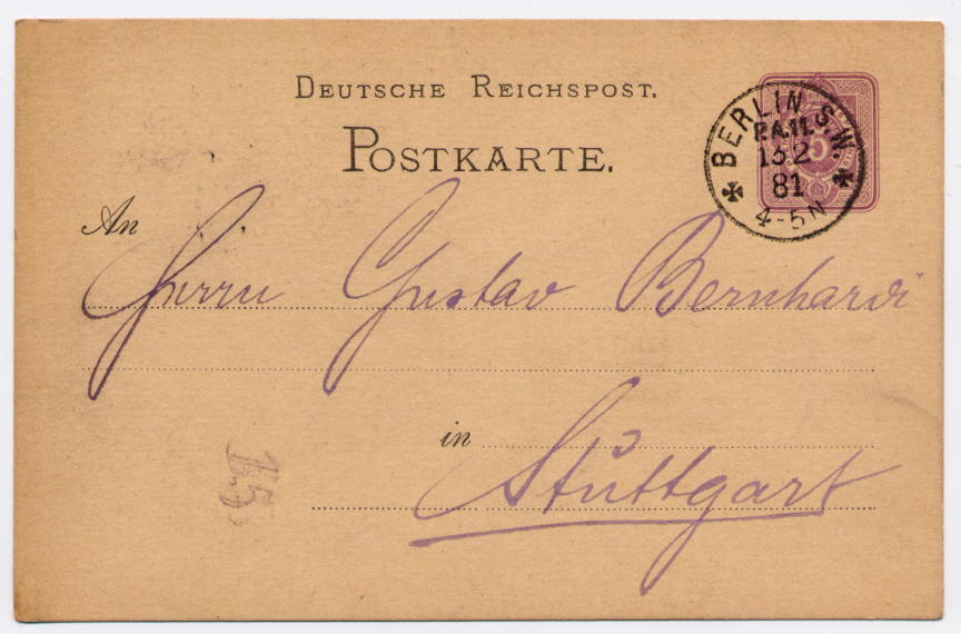 ich habe in einer geerbten Sammlung einen Posten Ganzsachen des Deutschen Reiches von ca. 1877-1889 mit sehr sauberen Stempeln gefunden. Leider verstehe ich nicht viel davon, denn mein Sammelgebiet ist Deutschland von 1945-1949. Mir ist aber aufgeallen, das diese Belege alle den Zielort Stuttgart hatten und dort nochmals gestempelt wurden. Handelt es sich dabei um Ankuftstempel? Wurden damals auch normale Briefe und Karten mit Ankuftstempeln versehen? Ich kenne das aus meinem Sammelgebiet nur bei Einschreib- Eil- und Wertbriefen.