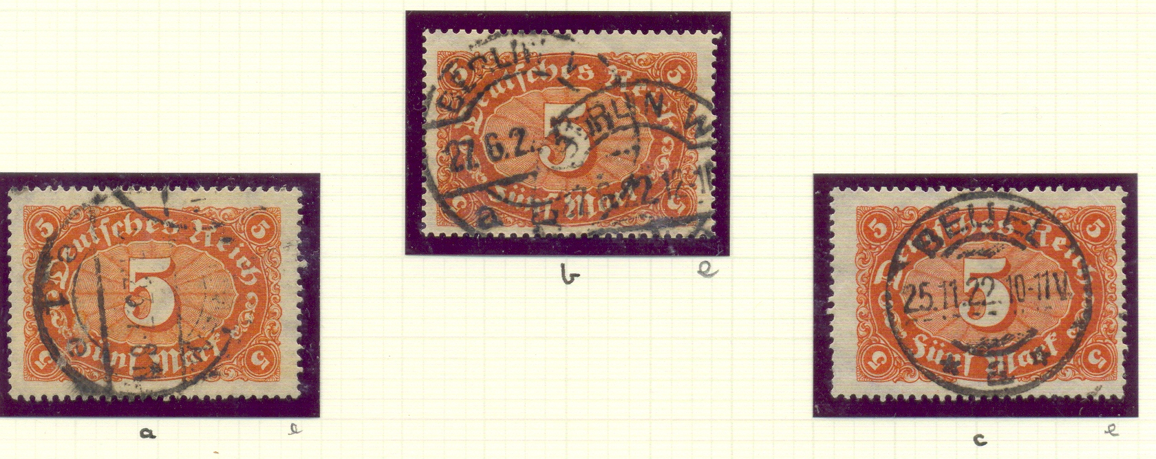 Eine erste folgt sogleich: Die Marke im Scan anbei ist wohl eine Dt. Reich 1921er „Pflüger“, Michel-Nr. 176. Laut meinem neu erworbenen Michel-Katalog existiert diese Marke in dunkellilaultramarin / hellgraugrün (a) und schwarzlilaultramarin / hellgraugrün (b). Mir allein fehlt nun die Erfahrung / das Wissen, auszumachen, welche Marke hier vorliegt. Ich werde mir auch den entsprechenden Farbkatalog zulegen, glaube aber auch, dass der hier wegen der sehr filigranen Farbunterschiede nur bedingt weiterhelfen kann. Habt Ihr eine Idee, welche Marke vorliegt? Im voraus besten Dank für Eure Antworten.