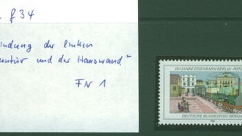 5 Pf Sehenswürdigkeiten Berlin mit dem Plattenfehler "dickes N von BERLIN" auf Feld 82 einer Teilauflage.