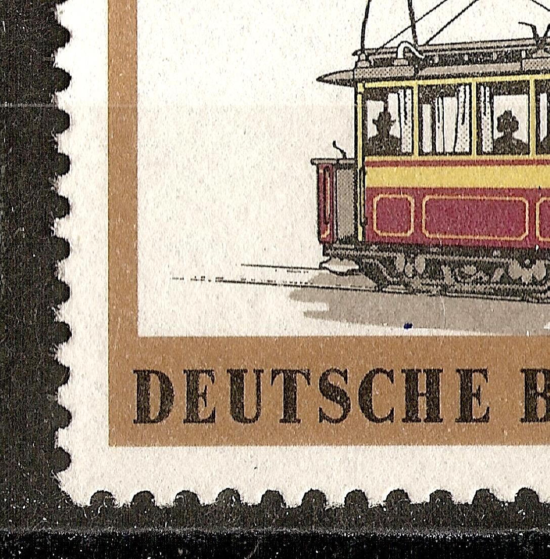 MiNr. 380, schwarzer Fleck unter Straßenbahn