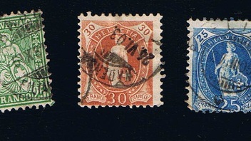 Auf dem rechten Scan sind fünf Marken der Schweiz, bitte mit schwarzem Hintergrund scannen, sonst ist von der Zähnung pp. wenig zu erkennen.