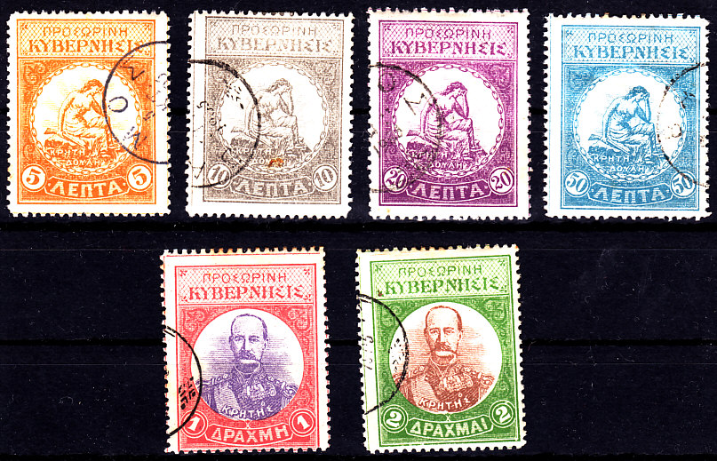 das ist Kreta, Post der Aufständischen, Therison, kompletter Satz von 1905, gestempelt 20 Euro laut Michel online. Allerdings Hinweis, dass es Falschstempel gibt. Der Satz sieht zumindest gefälligkeitsgestempelt aus.