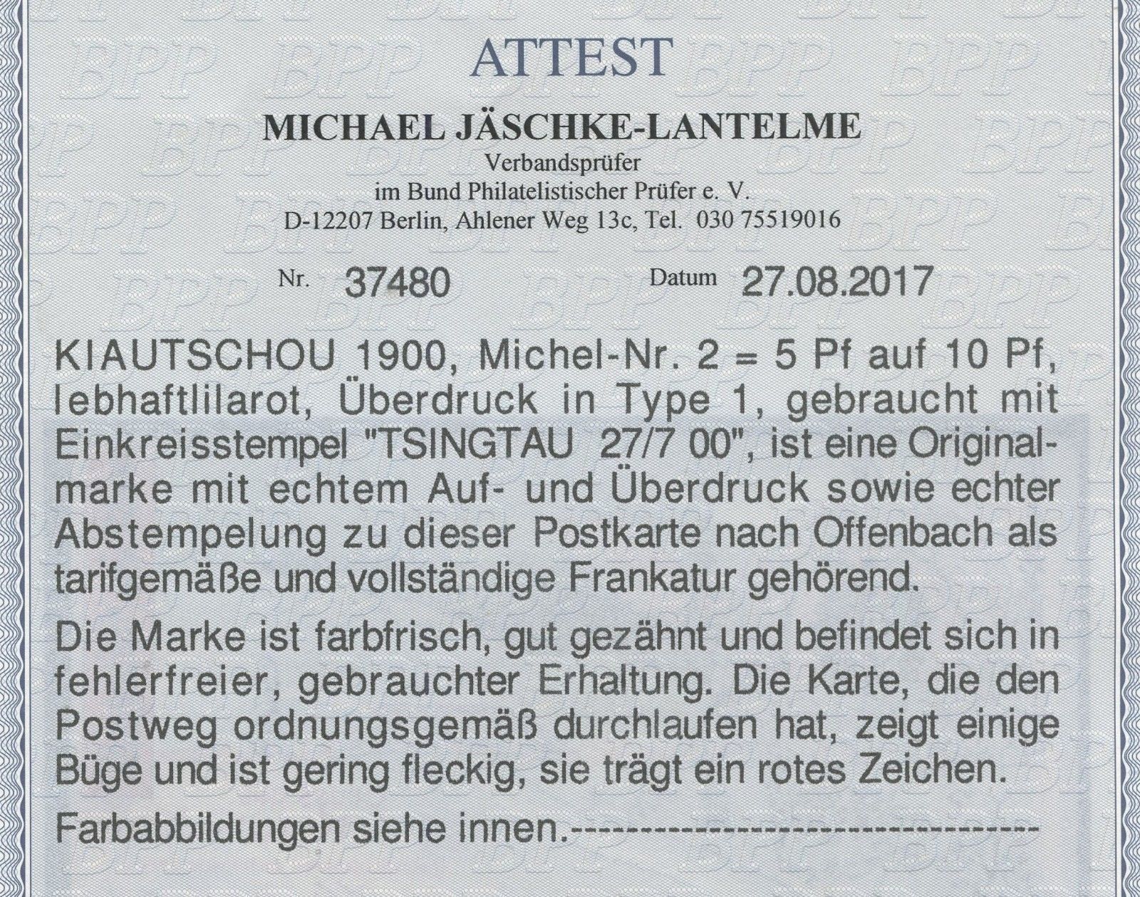 Die Marke wird verkauft wie im Bild dargestellt, ohne Zertifikat, keine Garantie, ob Original oder nicht, keine Rückgabe akzeptiert, Startpreis war 1,- EUR als Auktion.