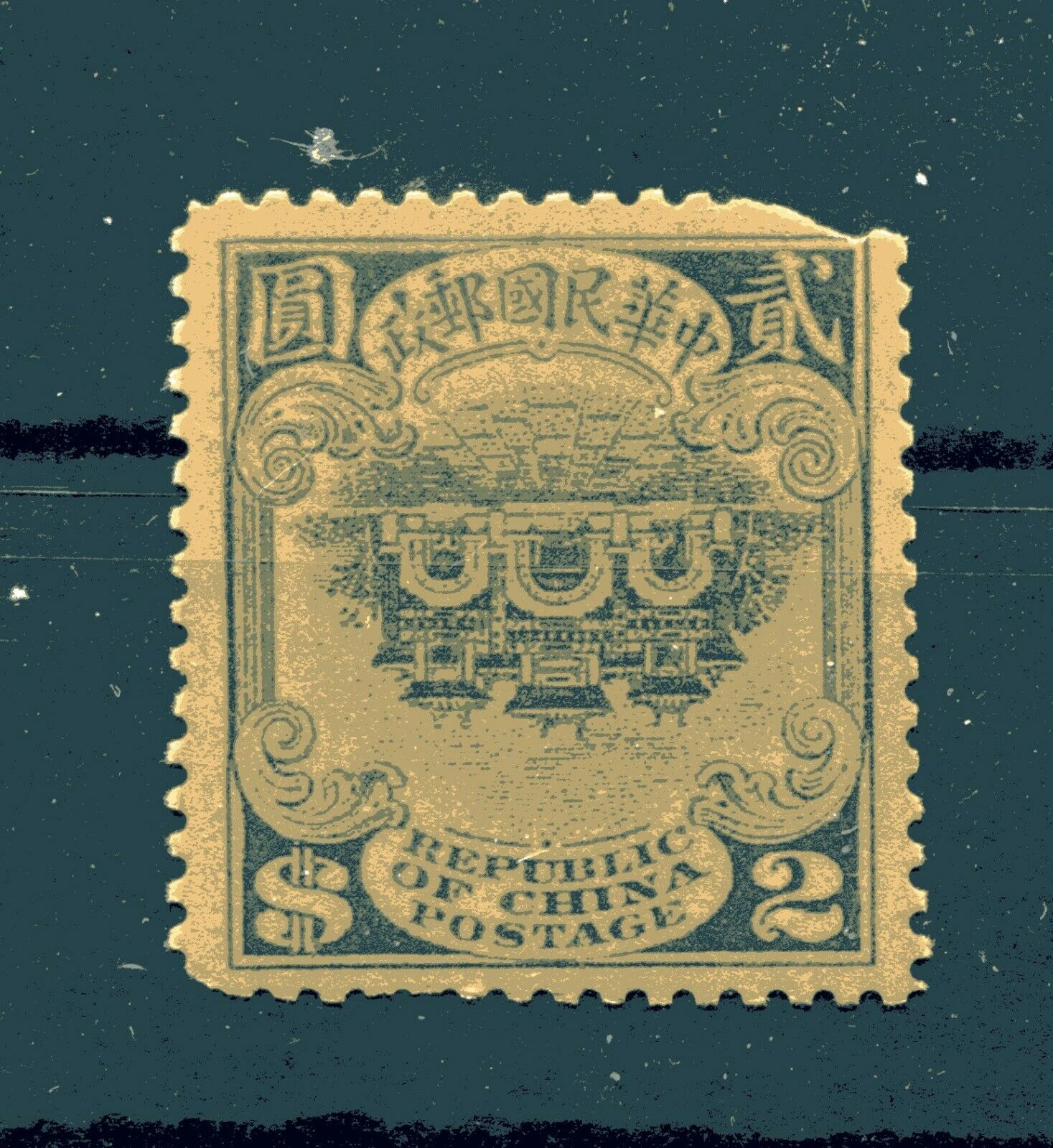 Eine kopfstehende Marke aus dem Jahre 1913 (Michel-Nr. 166 II K) mit Abbildung der Halle der Klassik in Peking, an 2 Ecken stark beschädigt, ist gerade bei Ebay für nur 79,- EUR angeboten, 1 Bieter ist schon dran. Da in China die Qualitäts-Ansprüche bei älteren Briefmarken nicht so scharf sind wie anderswo in der Welt, kann es sein, daß der Preis bis zum Ende (knapp 2 Tage noch) noch stärker ansteigt, wenn es nur sehr wenige Exemplare geben sollte. Eine normale Marke mit diesen Schäden würde man wohl bei uns schon als "Knochen" bezeichnen.