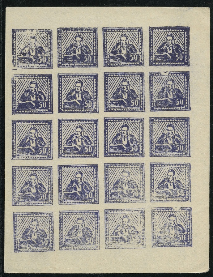 Ein ganzer erhalten gebliebener Kleinbogen aus der Liberated Area mit 20 Marken, aus dem Yili-Tacheng-Altay-Gebiet, wird hier für 1.400,- EUR oder Preisvorschlag angeboten. Wer der Herr auf den Briefmarken ist, wird nicht verraten, sieht irgendwie aus wie ein Radio- oder Fernseh-Moderator ?(:D