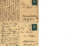Und dann für heute noch schnell eine Karte aus Altdorf hinterher - diese stammt von 1919, gelaufen mit Bahnpoststempel,leider nicht gut lesbar. Die Karte ging nach Haus Merödgen Post Lucherberg - ebenfalls Gemeinde Inden - kommt zum späteren Zeitpunkt auch noch was von.