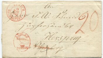 Ich kann hier einen Winterthur-Brief aus der zweiten Stempel-Periode zeigen, vermutlich aus der Zeit 1845-48. Im Stempel ist der Schweizer Anteil von 4 Kr. vermerkt. Es sind aber keine weiteren Tax-Vermerke erkennbar, war die Auslieferung in Constanz kostenlos?