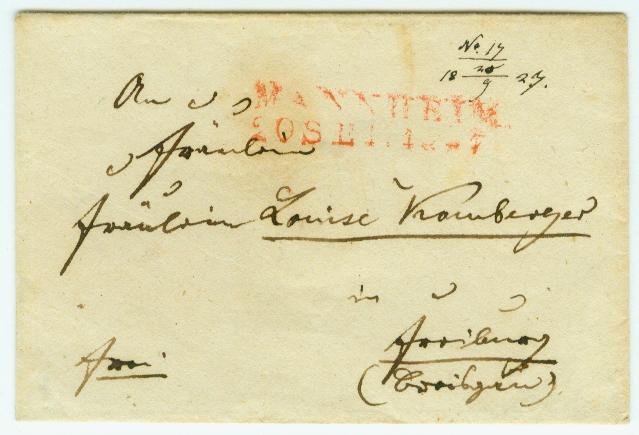 Ich startet dieser Thema mit ein kleines Brief. Sendet von Mannheim am 20.9.1827 nach Freiburg im Breisgau.