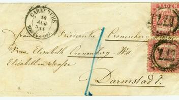 Schaue diesmal ein Brief aus Carlsruhe nach Darmstadt am 16.8.186?.