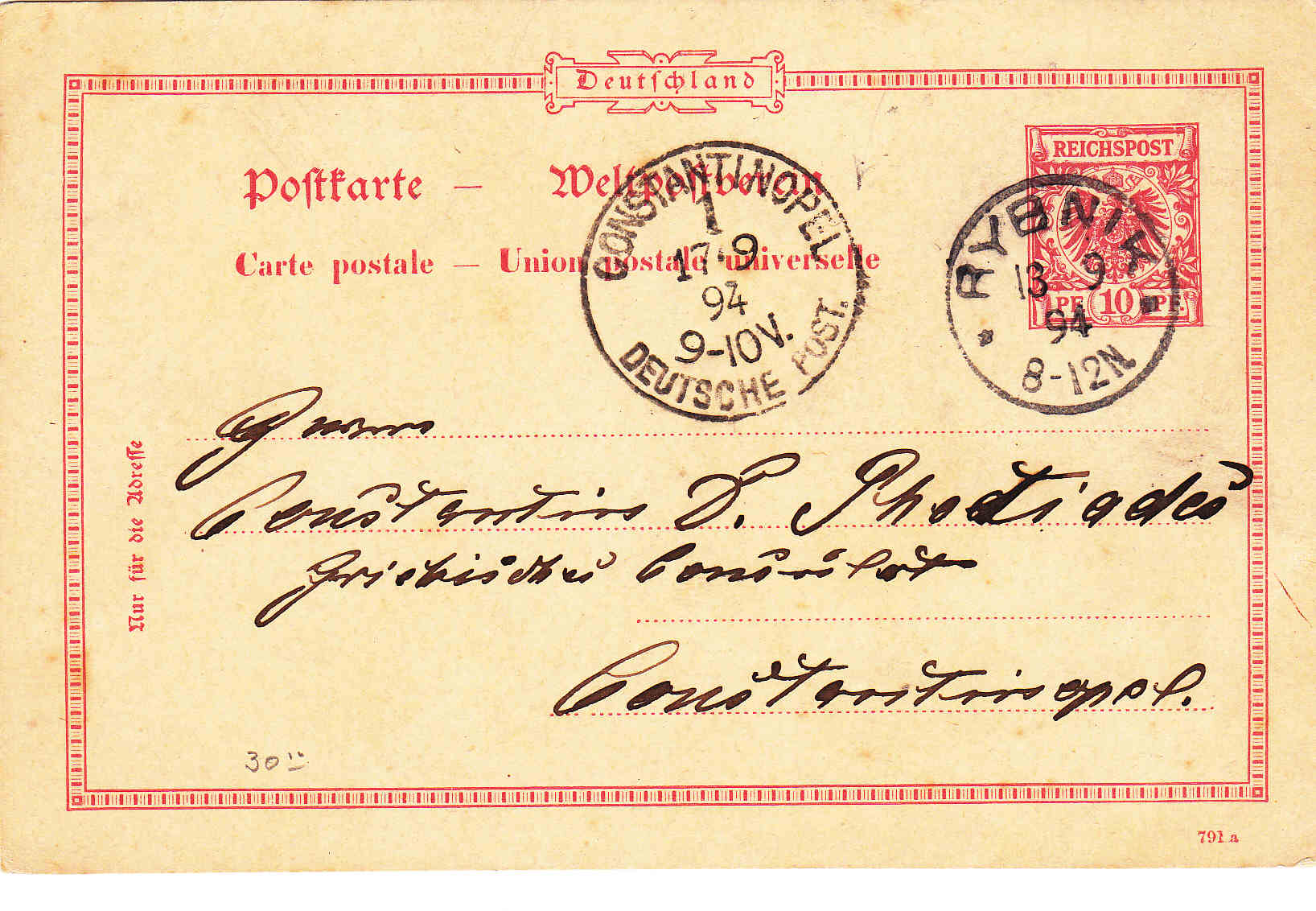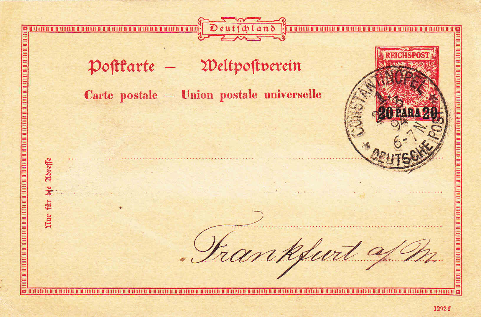 wie bereits im Chat angekündigt, eröffne ich das Thema Ganzsachen der deutschen Kolonien und Auslandspostämter, ein Sammelgebiet, welches nicht nur durch die verschiedenen Stempelorte der Kolonien und Auslandspostämter reizvoll ist, sondern auch durch die große Vielfalt an Karten, Briefen und Streifbändern. Mein Interesse an den Ganzsachen hat sich vor rund 3 Jahren ausgehend von der deutschen Post in der Türkei entwickelt. Deshalb fange ich auch mit der DP Türkei an und würde mich freuen, würden auch von Euch Stücke gezeigt...