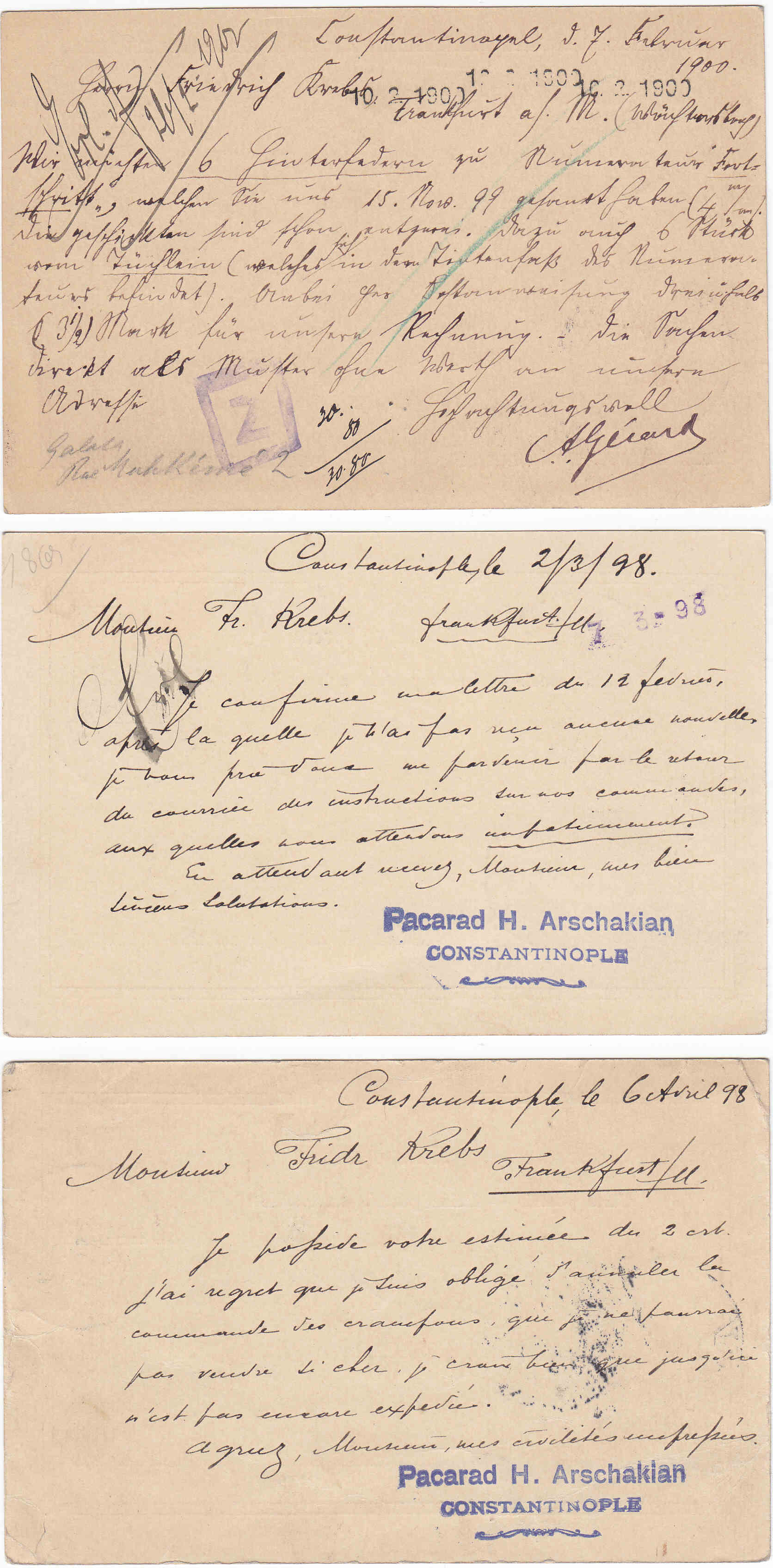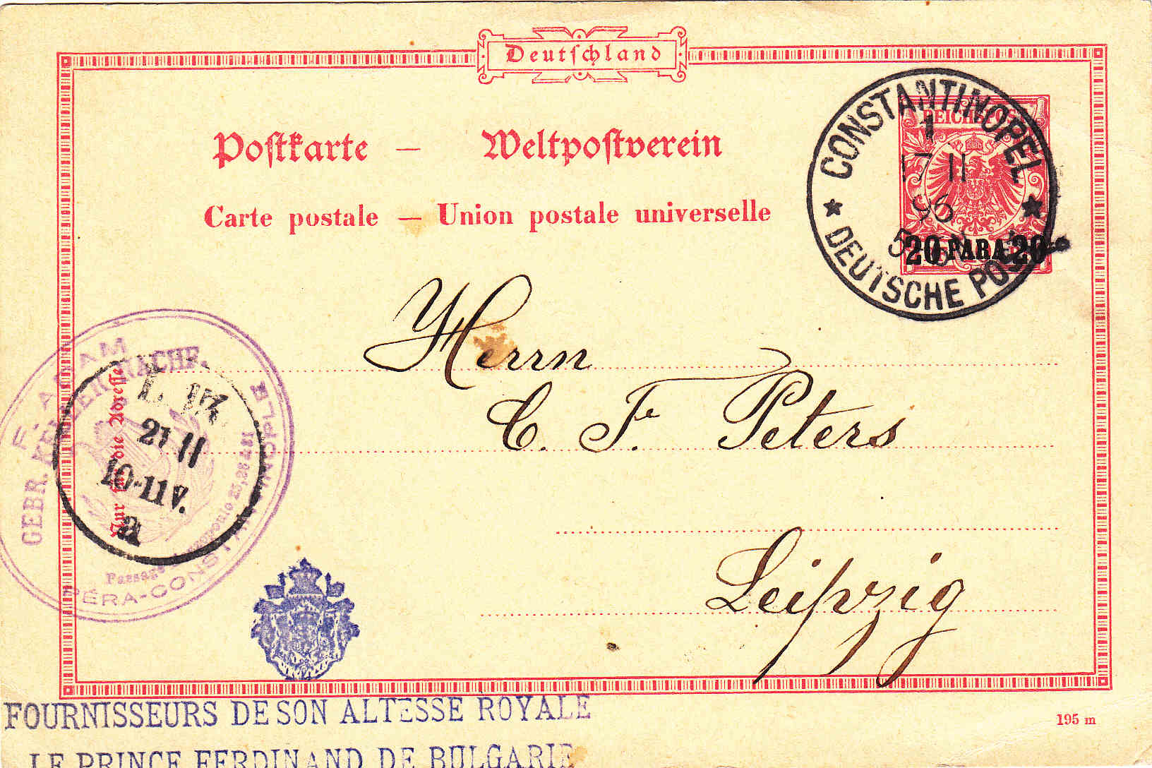 Und los geht es mit einer Vorläuferkarte der DP Türkei, VP 8, gelaufen von Constantinopel (2 / 4 [18]81) nach Nürnberg (7 4 1881)