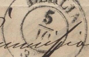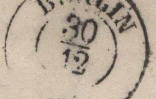 Interessanterweise finden sich Stempel in denen alle 3 Werte, also Winkel des Ortsnamen, Innen- und Aussendurchmesser mit einer Uhrzeit korrespondieren. Zusätzlich sind Schrifttyp und Schrifthöhe identisch. Daraus folgt, dass diese Angaben im Stempel geschnitten wurden. Der einzige Unterschied sind die Tages- und Monatsangabe incl eines vorhandenen trennenden Striches.