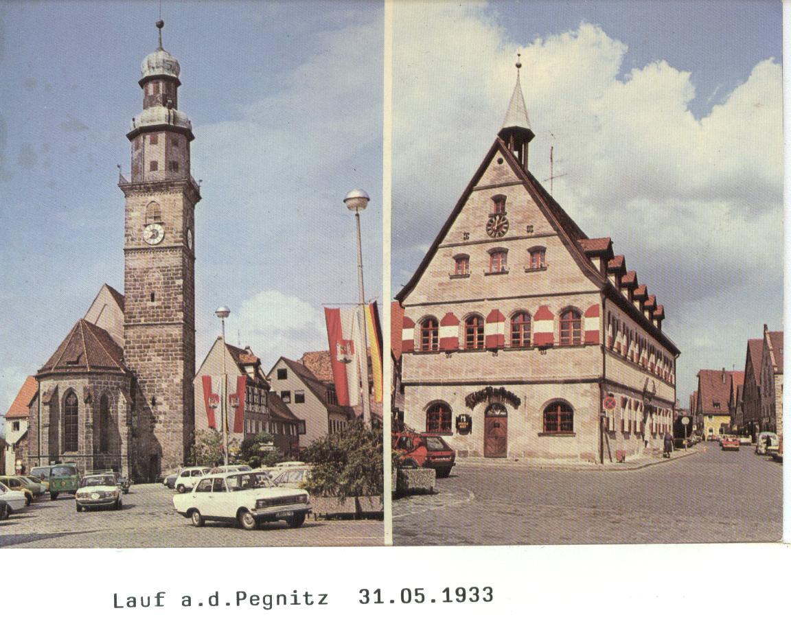 Lauf a.d.Pegnitz ist eine kleine Kreisstadt mit mittelalterischem Marktplatz, hat den 30. jährigen Krieg überstanden ( auch den 2. WK ) nur 4 Häuser ausgebombt, weil die Allierten Bomber zu früh ausgeklinkt haben. ( wir sind nur 17 km von Nürnberg weg )