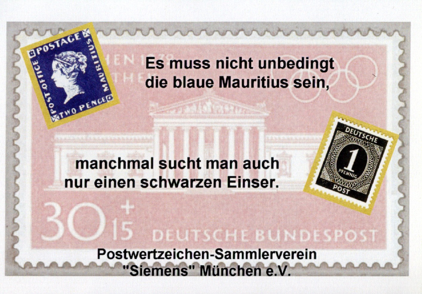 Ich war diesen Sonntag in München beim Großtauschtag des Postwertzeichen-Sammler-Vereins "Siemens". Dabei fielen mir 2 originelle und witzige Werbe-Karten dieses Vereins in die Hände, die ich Euch nicht vorenthalten möchte.